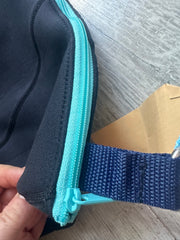 Please note, the zip may not do up tight to the end due to the material used (please see pictures). This bag has some sights of wear and markings on it due to the nature of repurposing the material. It is important to know that the bags are not waterproof due to the upcycled material and the stitching used to create these items. Due to this material the items may be slightly organic shaped! We try and upcycle as much material as we can, but other components used on these items such as zips and webbing straps are not always repurposed, but they are where ever I can get them and I will state this, otherwise please they are new items, which the zip, strap and components on this bag are. As with all Flotsam Flo items, this bag is not suitable for children and is for Adults only.