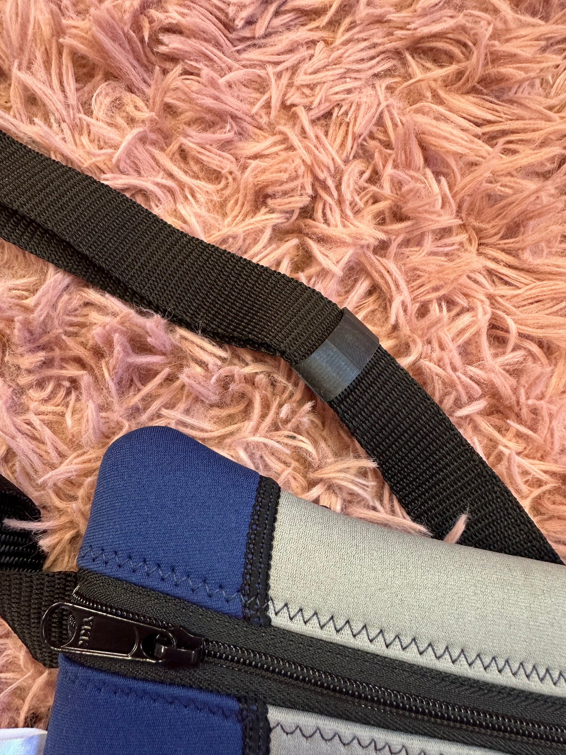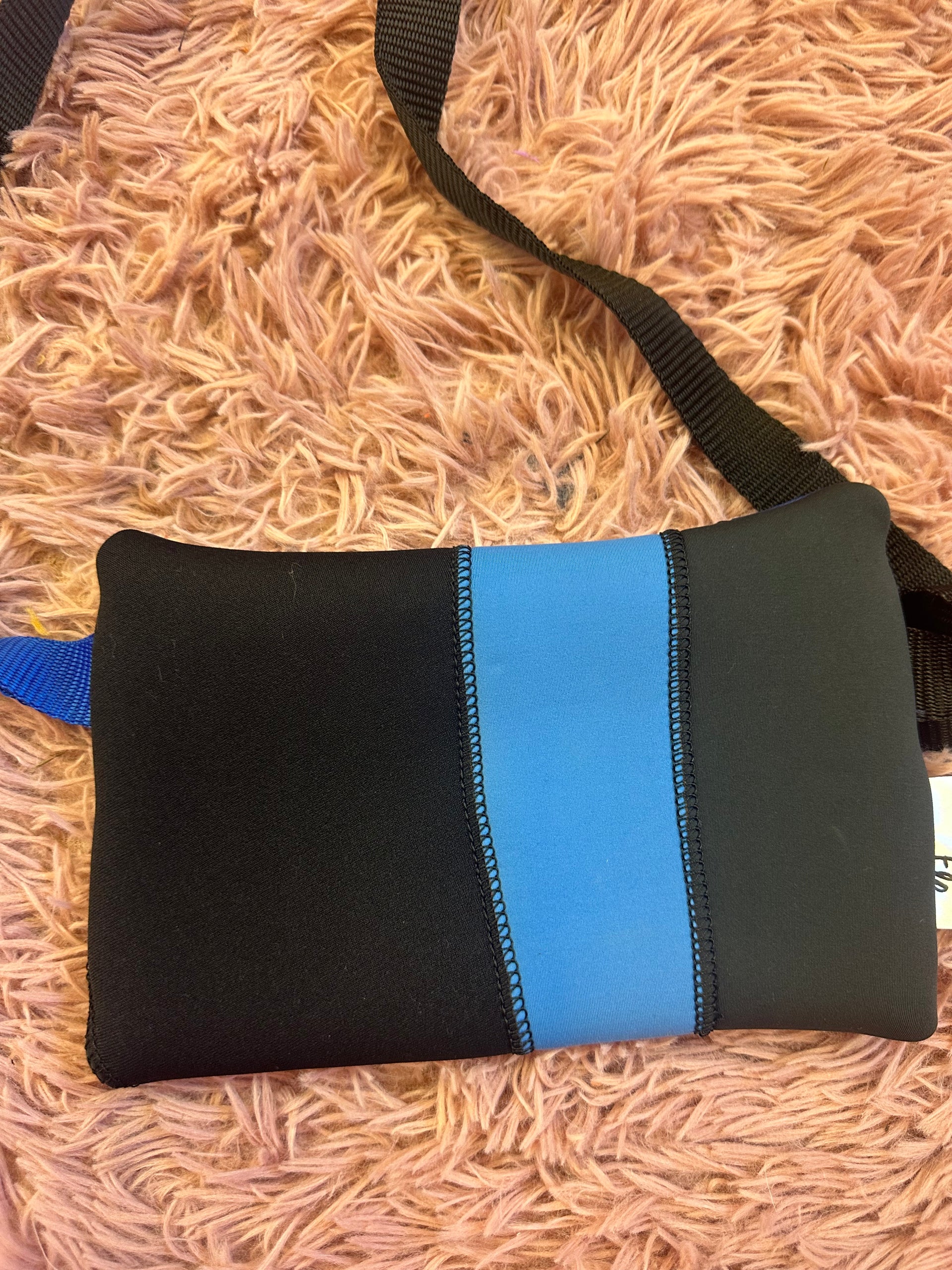 This waist bag is made mostly from a broken wetsuit. Wetsuits are difficult to recycle.