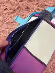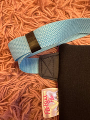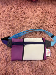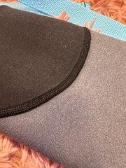 The keeper of the strap is made from a punctured inner tube. The waist bag has a zip that measures 8” long approx and this is also the length of the bum bag. The height of the waist bag is 5” approx. The strap is adjustable and can neatly be tucked in with the innertube keeper on the webbing strap. The webbing strap that fits around the waist goes up to 38” approx when the strap is at its longest. However the strap is adjustable so goes much smaller also. Made in Cornwall. As this material has been made from a broken wetsuit there may be some markings or signs of wear. All wetsuits are washed before I use them but I don't like using harsh chemicals, but these marks are the beauty of using upcycled materials.