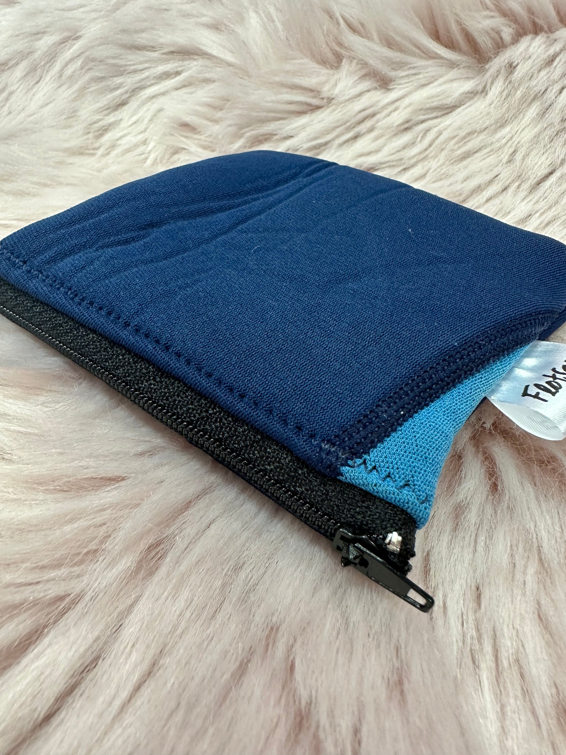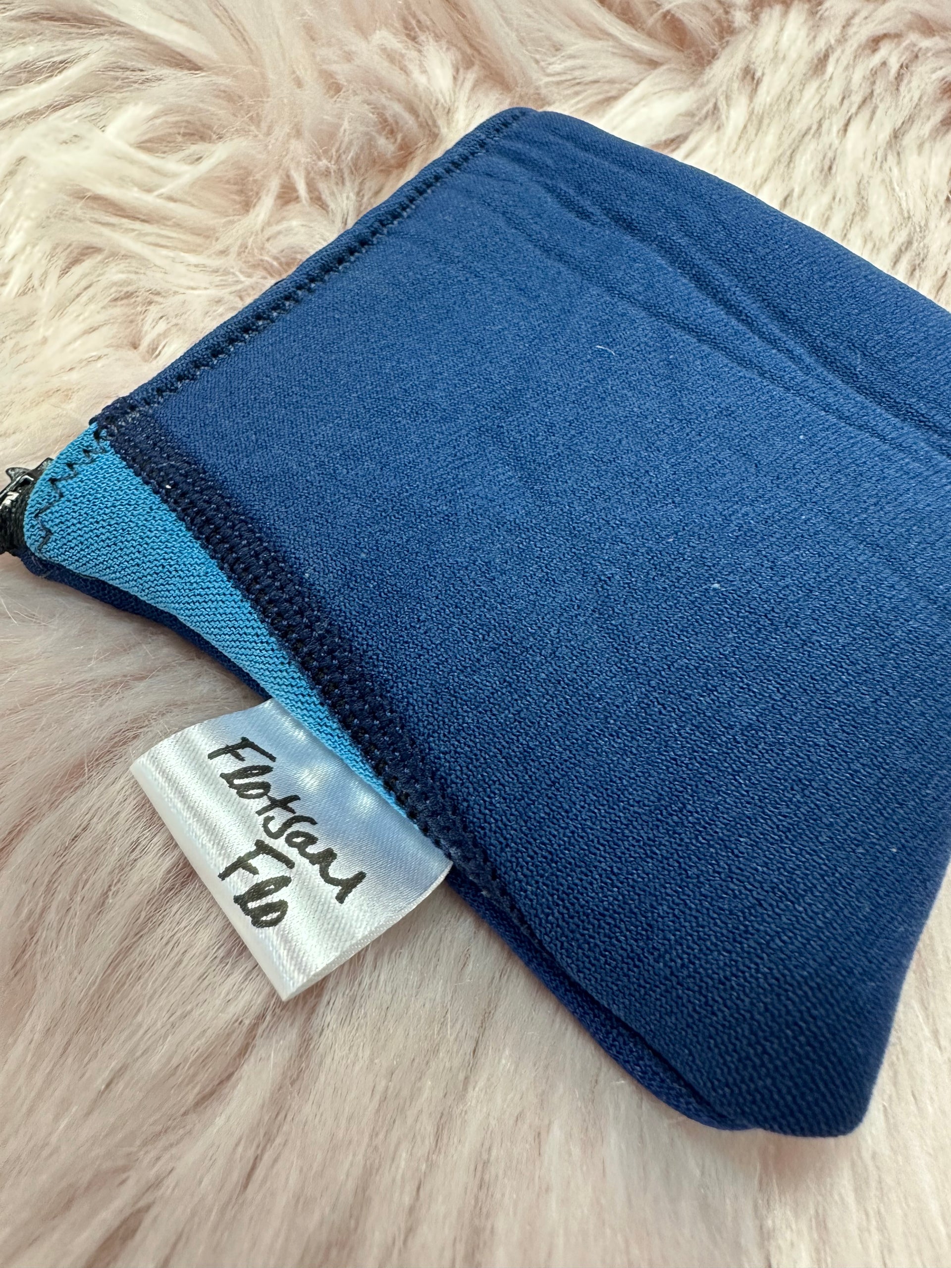 Here is a handmade zipped coin purse, made mostly from a broken wetsuit. Wetsuits can't easily be recycled so we have given them a new life! Handmade in Cornwall, this coin purse has one zip that measures 4 1/4” long approx and this is also the length of the purse. The height of the purse is 4” approx.