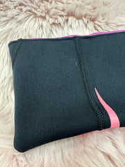 Here is a handmade zipped pouch, made mostly from a broken wetsuit. Wetsuits can't easily be recycled so we have given them a new life! Handmade in Cornwall, the zipped pouch has a zip that measures 7 1/2” long and this is also the length of the pouch. The height of the pouch is 5” approx. These pouches are perfect for holding lots of items together, so they are easy to find in your bag. All items are hand made and often very individual due to the materials used.