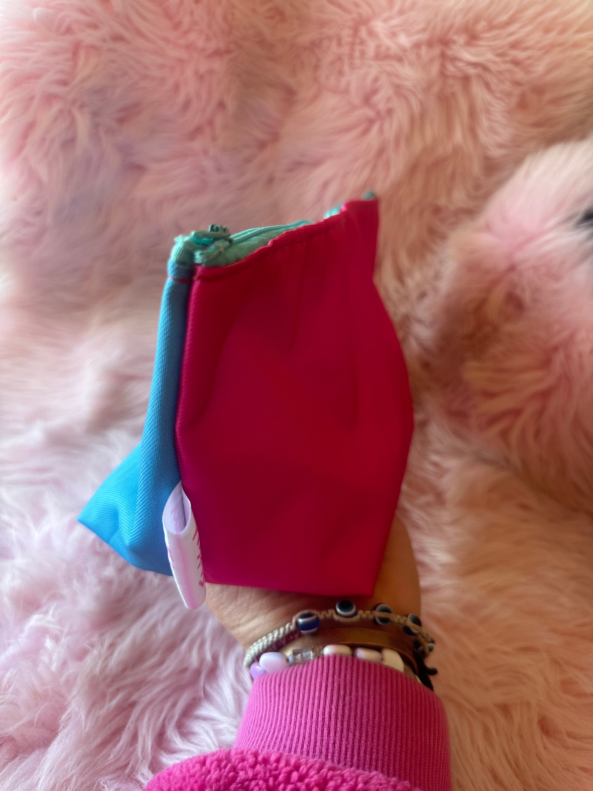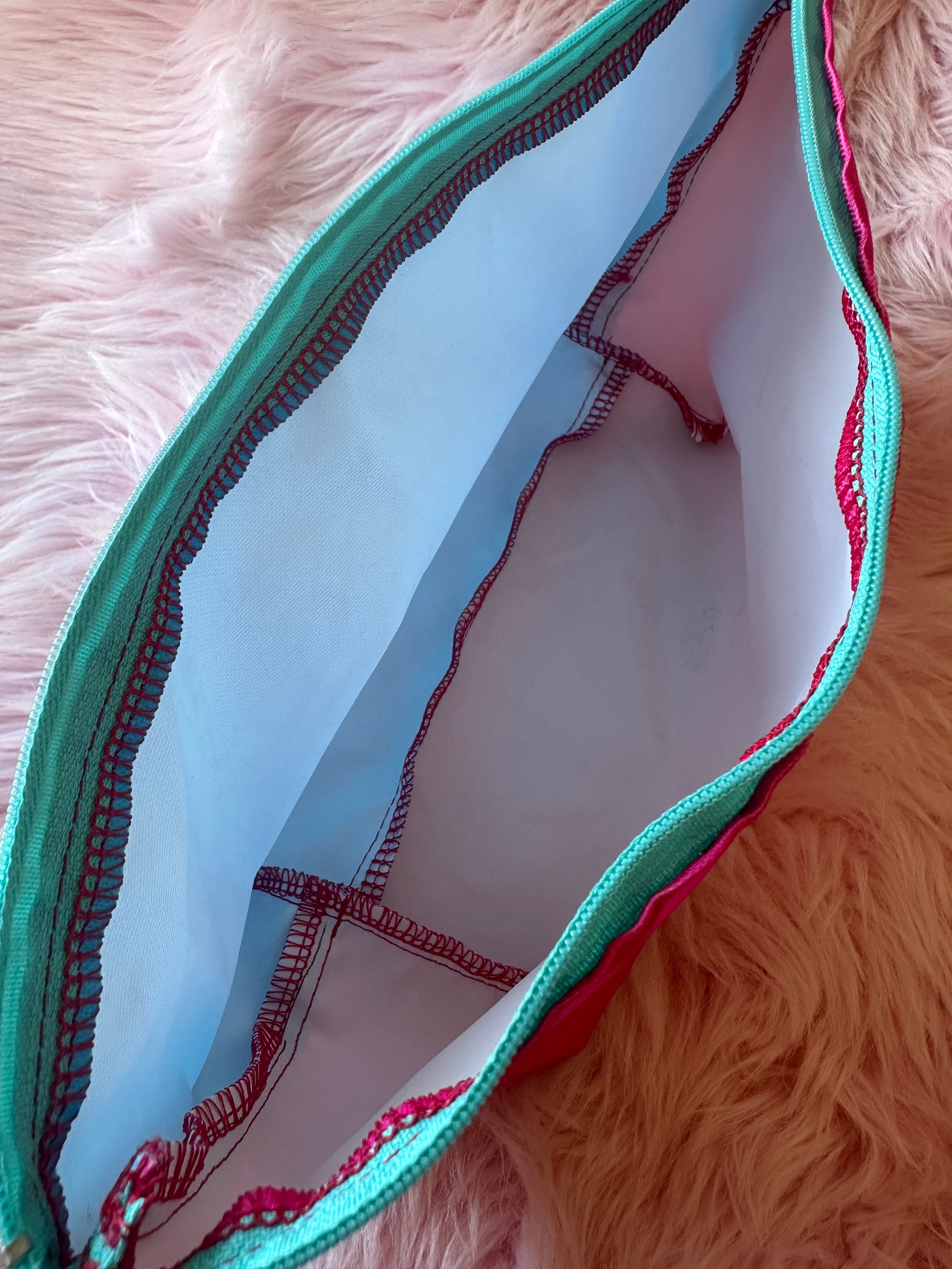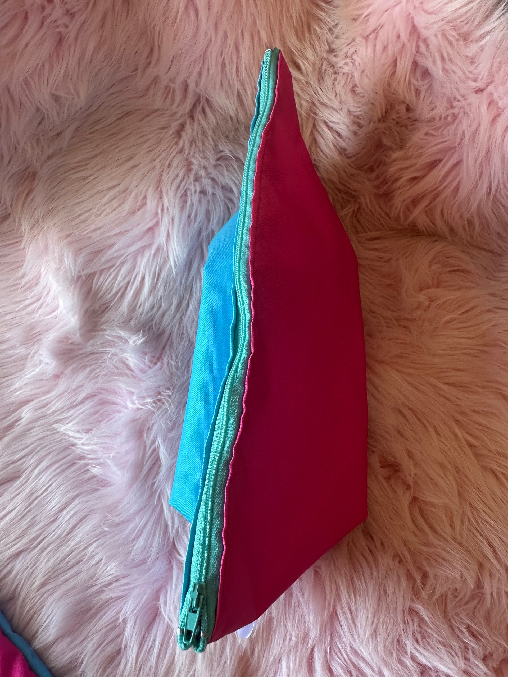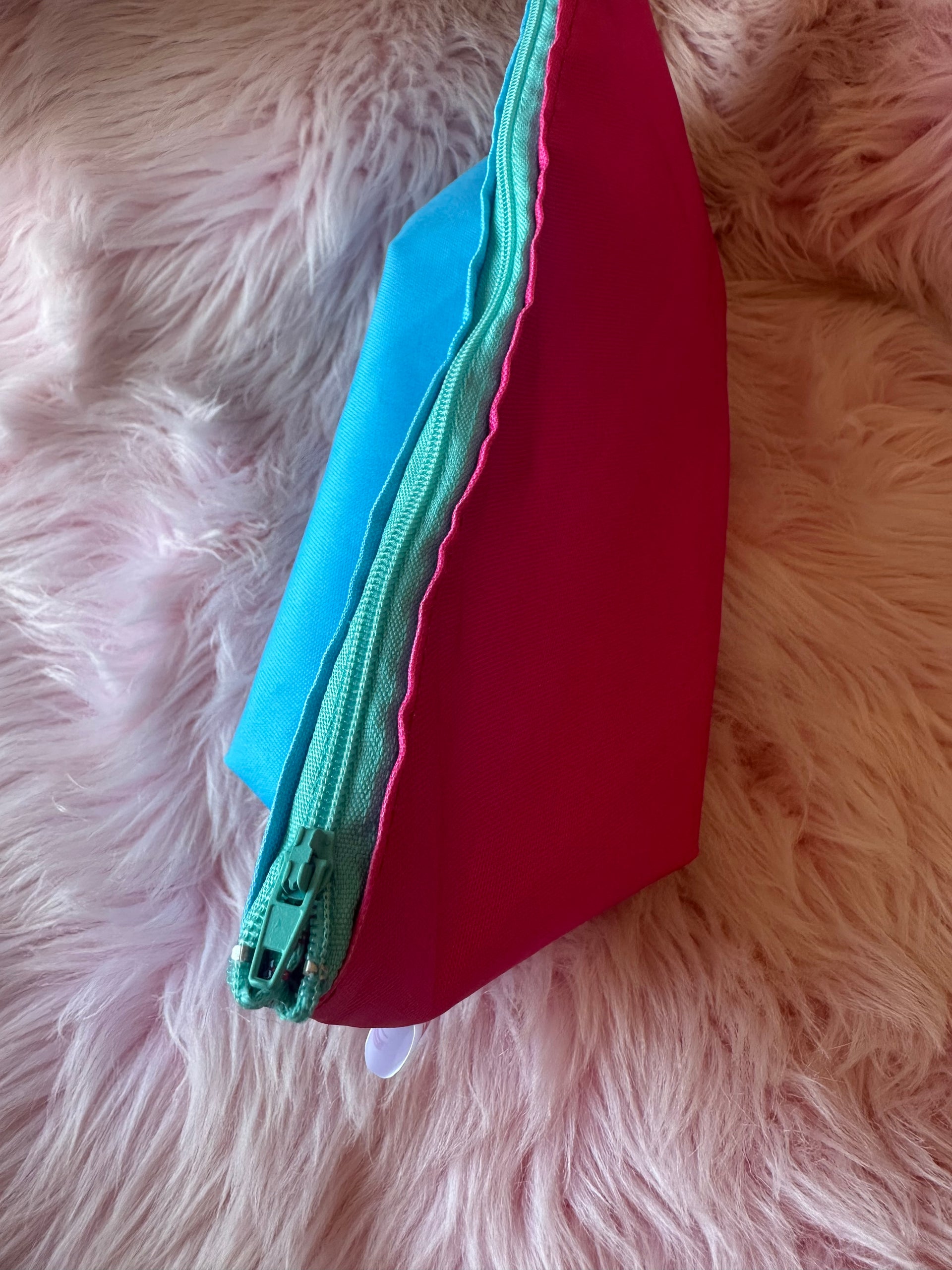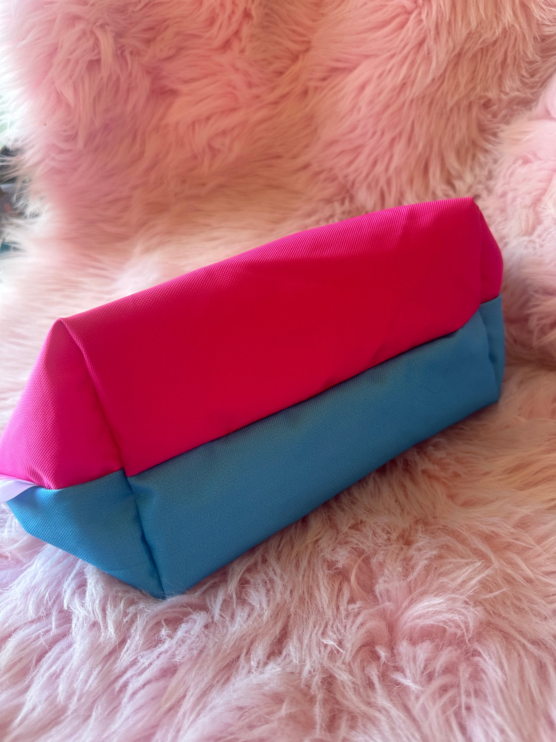 This handmade, zipped boxy pouch is made mostly from a Blue and Pink Gazebo. This material was going to waste and cannot easily be recycled. Boxy pouches are perfect for holding items together that you don’t want to lose as well as lots of other uses. This item has been handmade in Cornwall.
