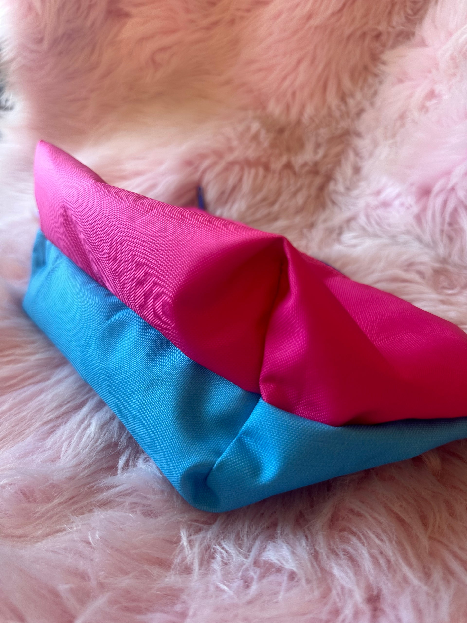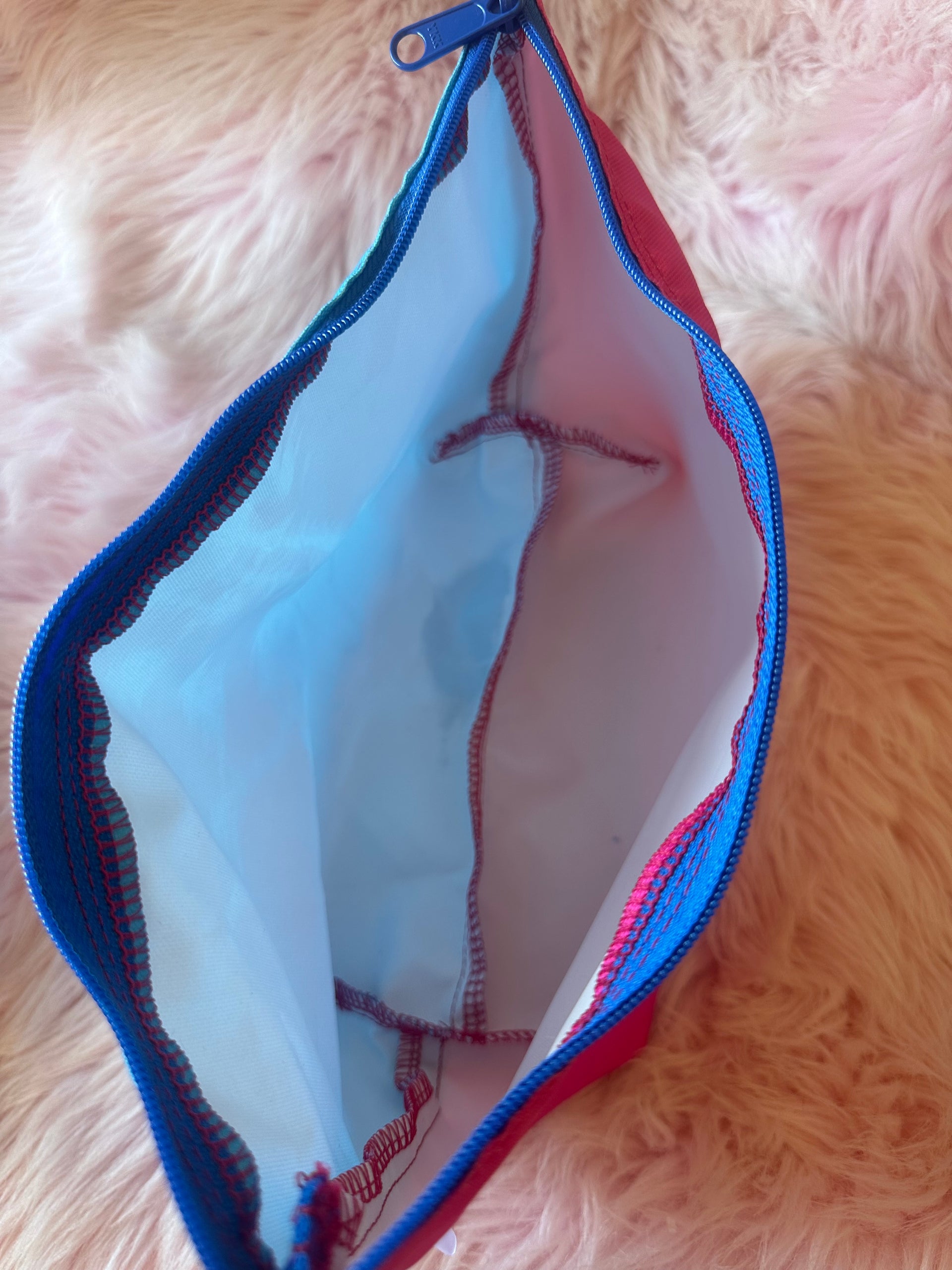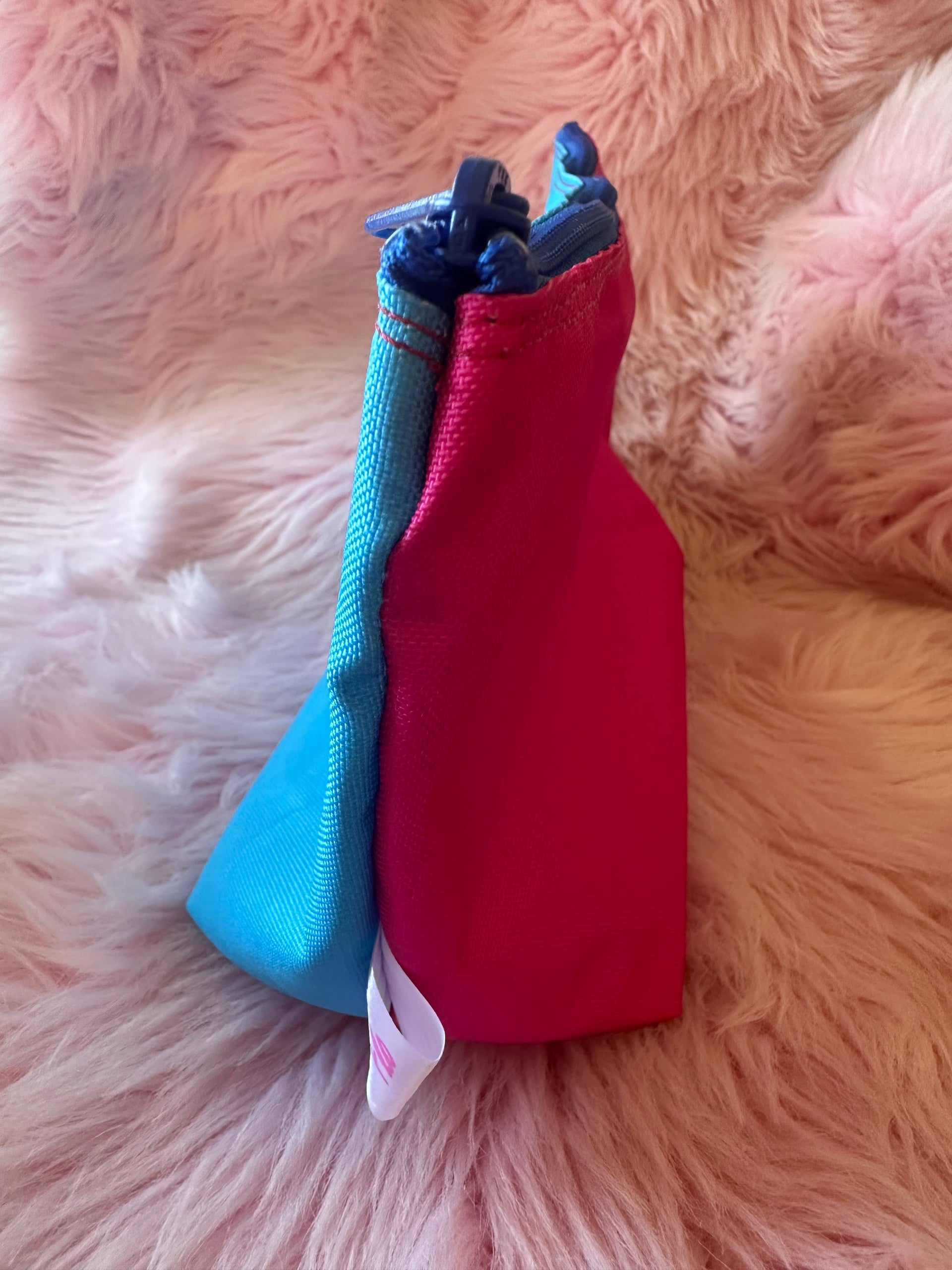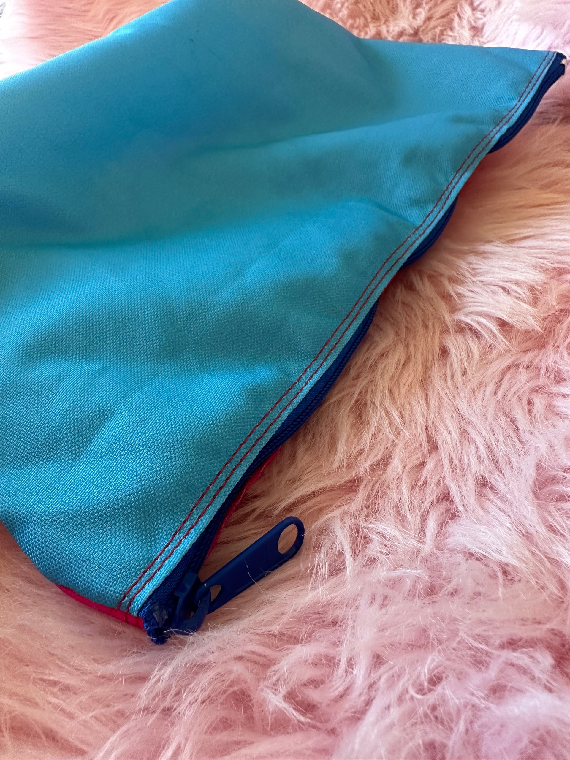 I used to be a Gazebo - Blue and Pink Boxy Pouch - very tiny mark