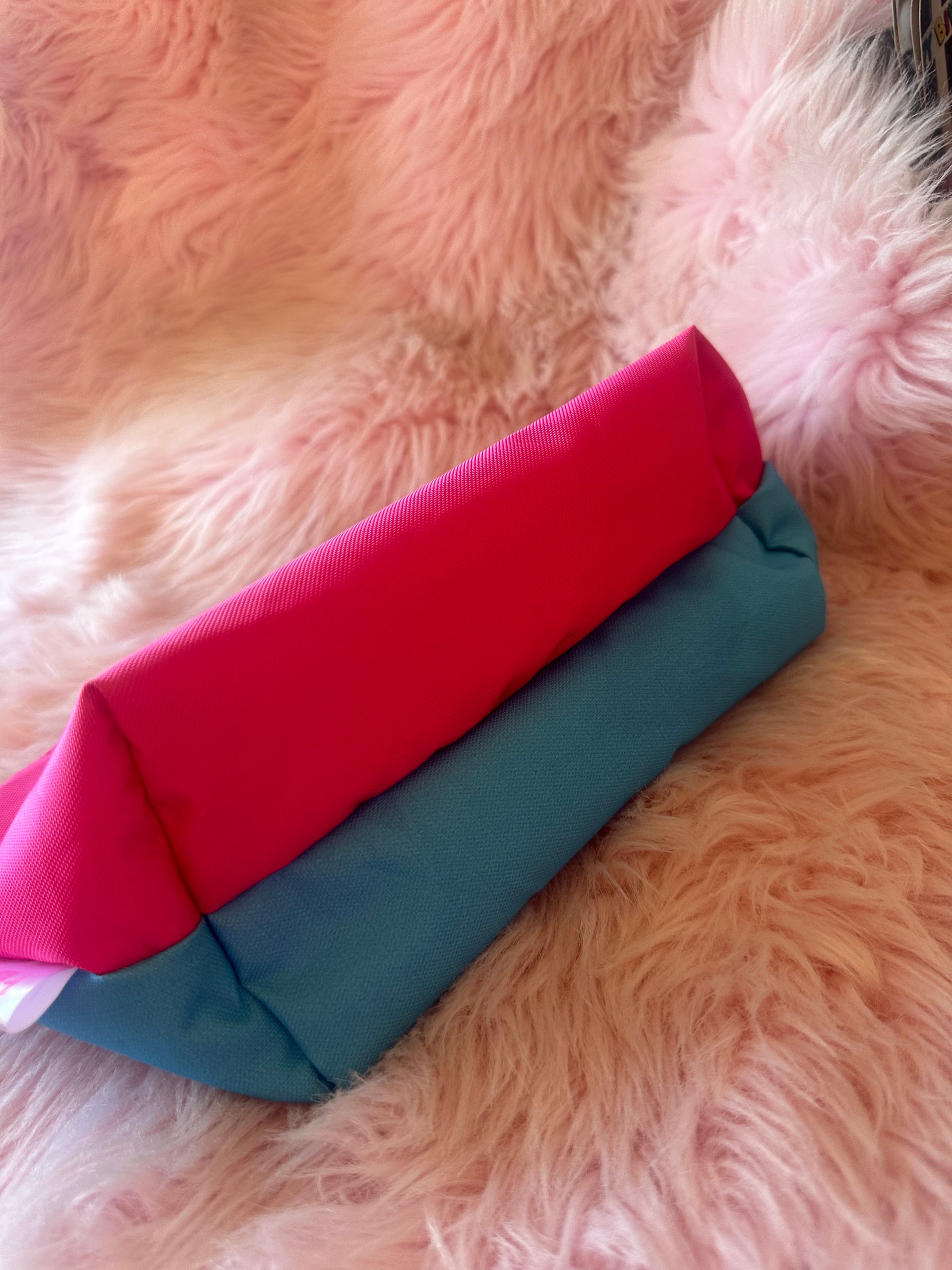 This handmade, zipped boxy pouch is made mostly from a Blue and Pink Gazebo. This material was going to waste and cannot easily be recycled. Boxy pouches are perfect for holding items together that you don’t want to lose as well as lots of other uses. This item has been handmade in Cornwall. **PLEASE NOTE: This item has a very, very tiny mark on it due to being reused material**