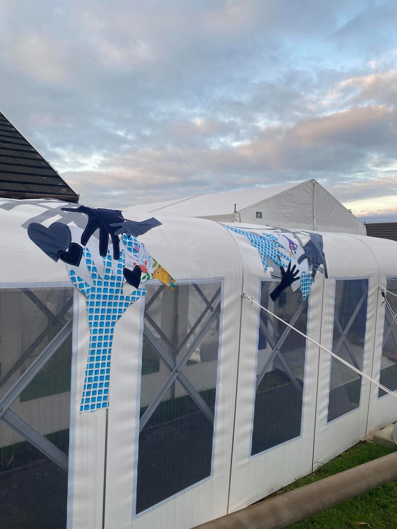 One project especially close to my heart was repairing the canopy at our local GP surgery after it had been vandalised. Using colourful, plastic-based offcuts, I created hand and heart shapes to restore and brighten the canopy. It became a small celebration of creativity, resilience and community spirit — the essence of what Flotsam Flo represented.